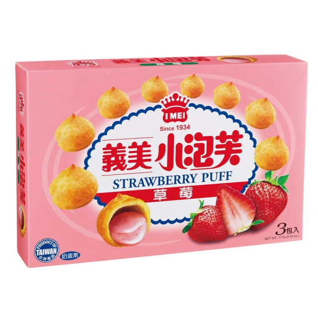 義美 綜合小泡芙3盒組(171公克*3)牛奶/巧克力/草莓各一盒